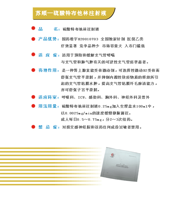 當前位置:首頁 > 藥品信息 > 小容量注射劑 > 硫酸特布他林注射液